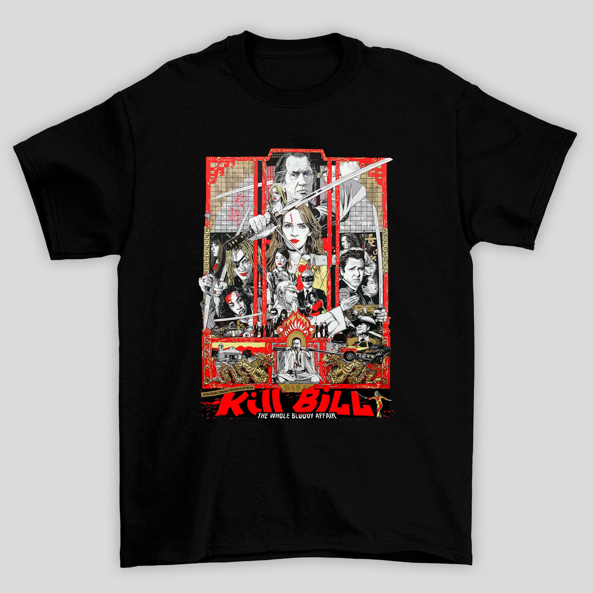 Camiseta Básica Unissex Kill Bill Poster The Whole Bloddy Affair
