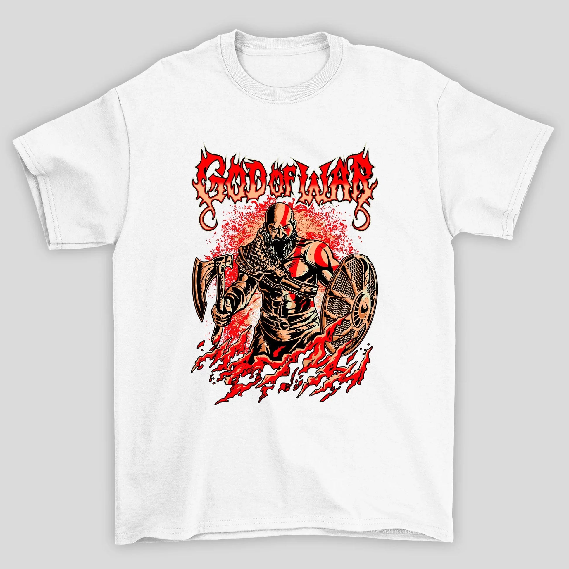 Camiseta Básica Unissex Kratos Leviathan e Escudo God Of War